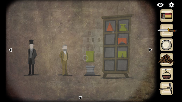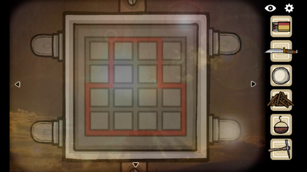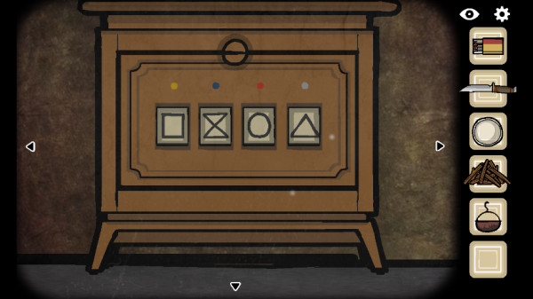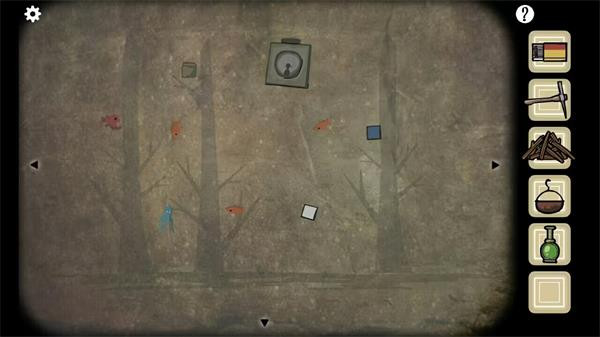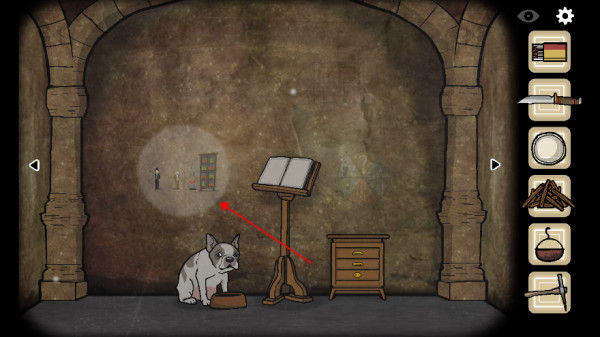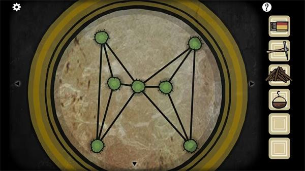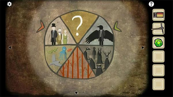 16、来到对面,完成墙上的解谜(根据石墩上的图形,将柜子上对应的图形移到石墩上即可)