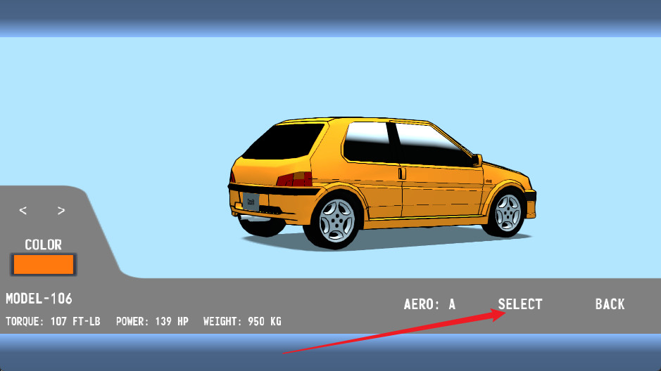 3、选择好自己想玩的模式后,进入车辆选择界面,可以自由选择想玩的车辆,并进行改装、换色