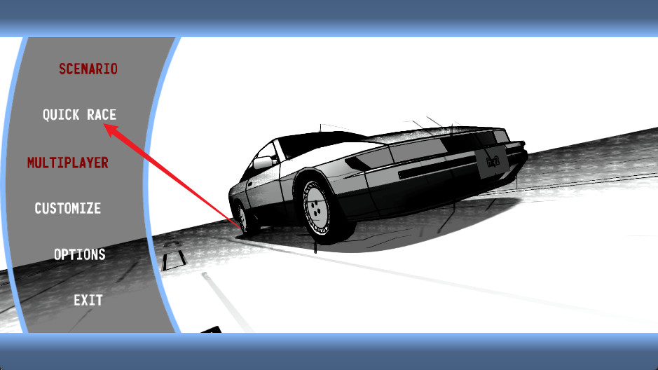 1、下载安装完毕后打开游戏,点击“QUICK RACE”进入游戏