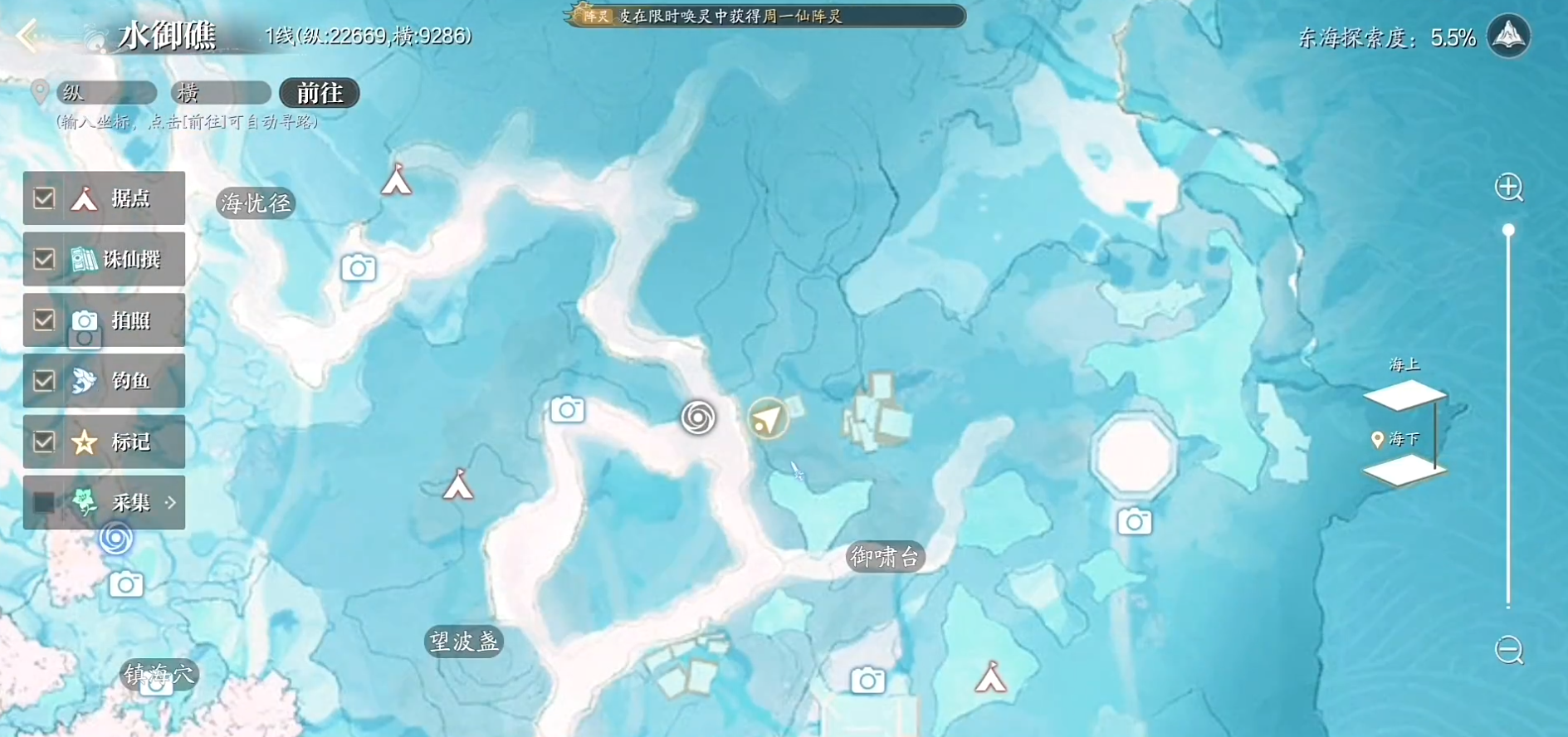 1、来到东海海下水御礁位置坐标处22695 9192 11382