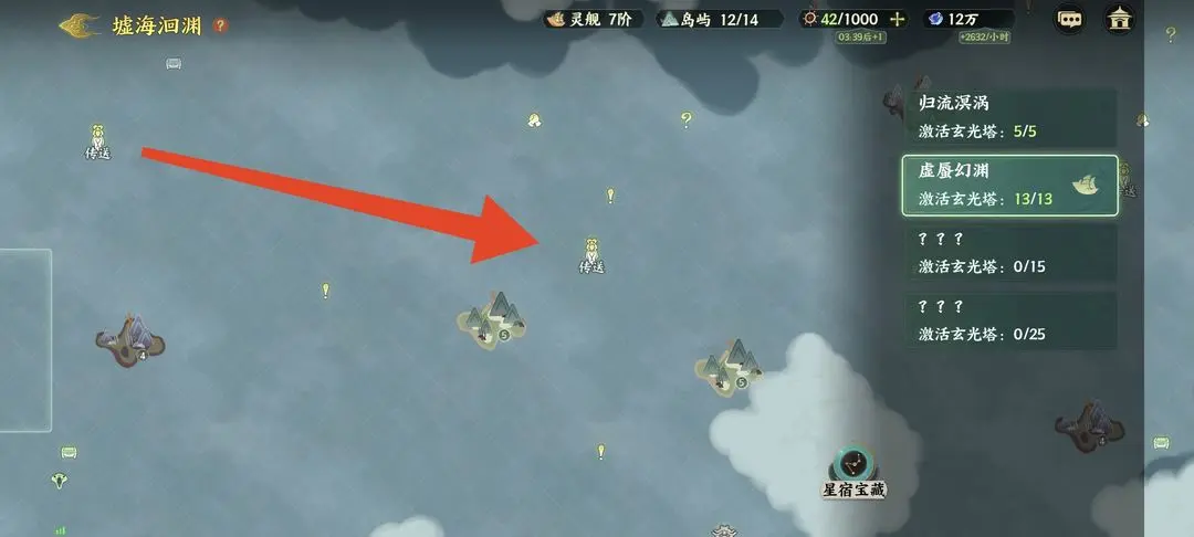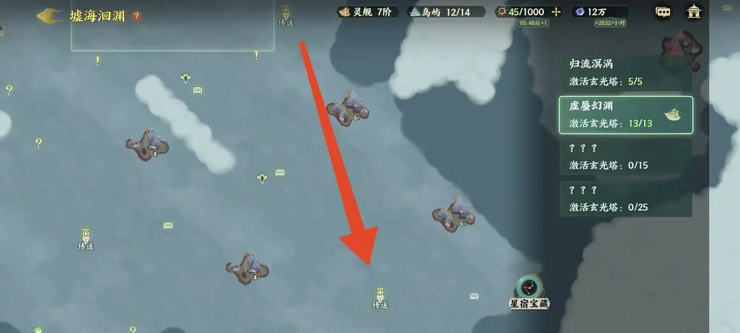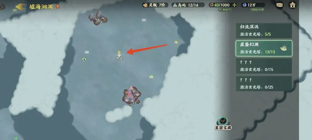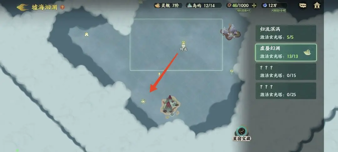 2、在第二座玄光塔正上方直走便可第三座玄光塔,路过可以打一下岛屿