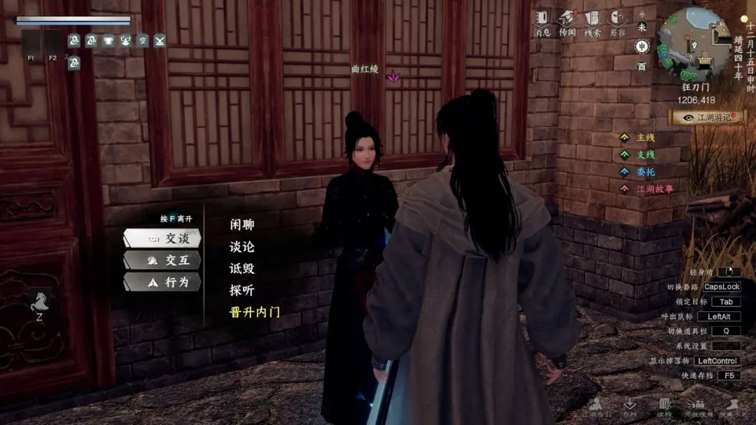2、来到1205,418交谈曲红绫晋升内门,再次对话触发剧情