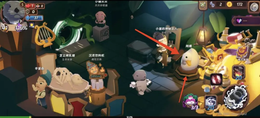 2、奇怪的蛋:打完第1个boss关后的中间休息层,右下角的白鸭子和他交互