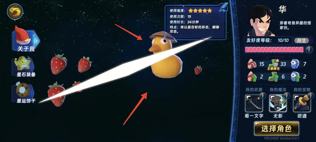 4、兽皮鸭子:魔镜选角色的界面点华出场动画的这个鸭子