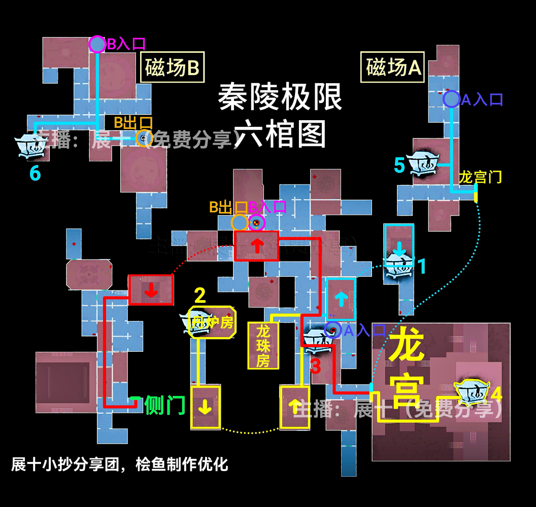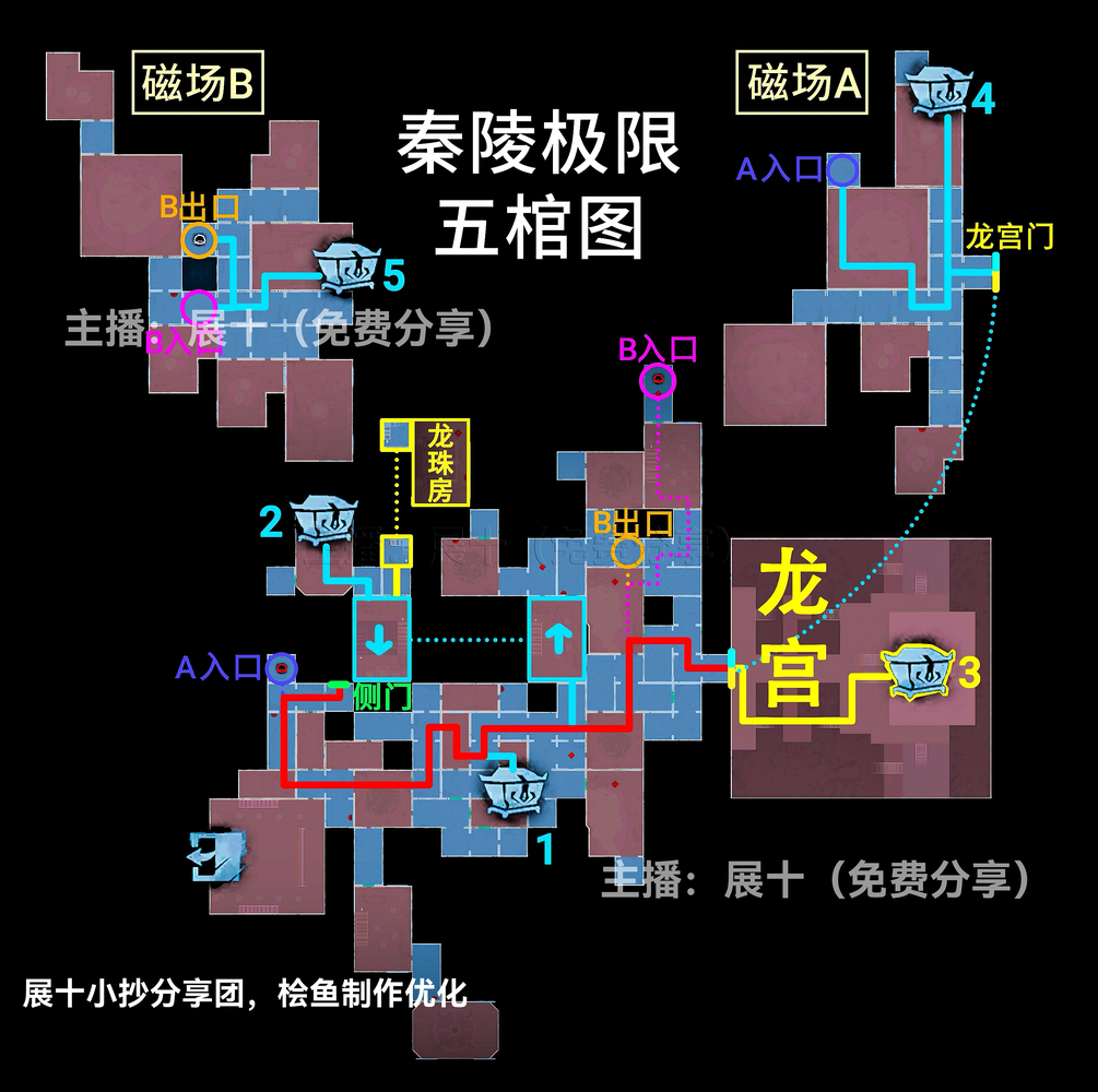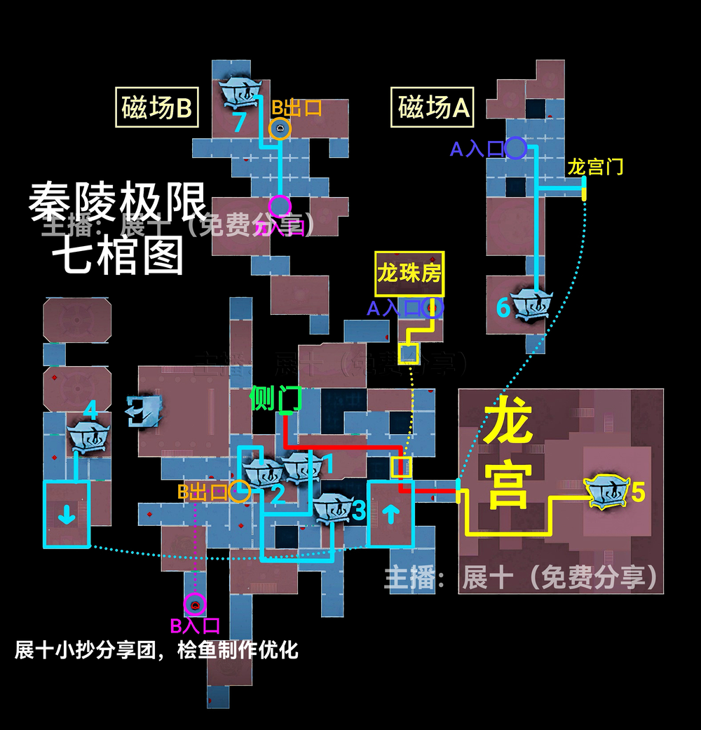超自然行动组秦岭龙宫地图更新,其中关于极限级别且侧门在上的地图中,总共的区域可以分为上下右黑、上下左黑、上右黑、上左黑,按照图示的内容区域来进行寻找即可,各个宝箱的分布位置以及走法路线和出入口内容见下文小抄图分享!