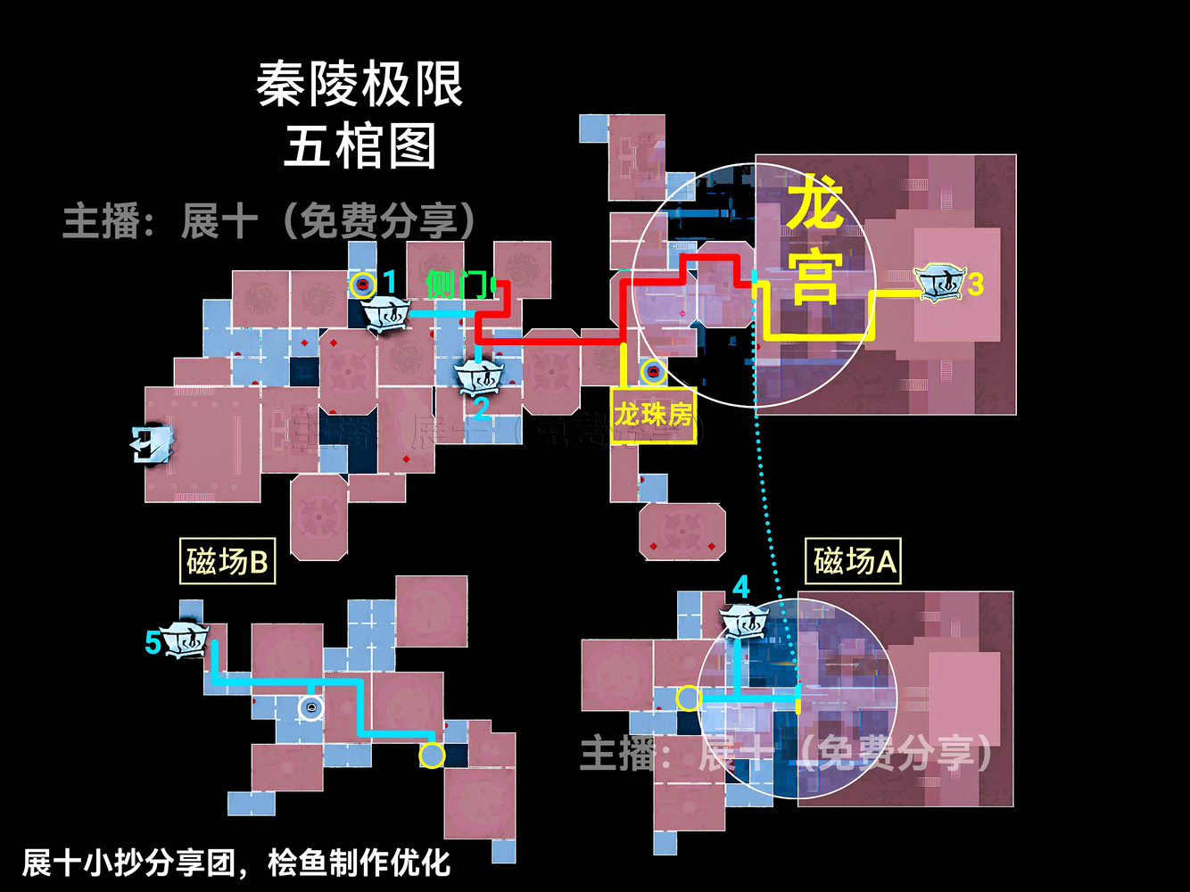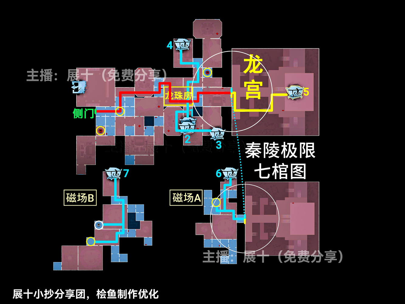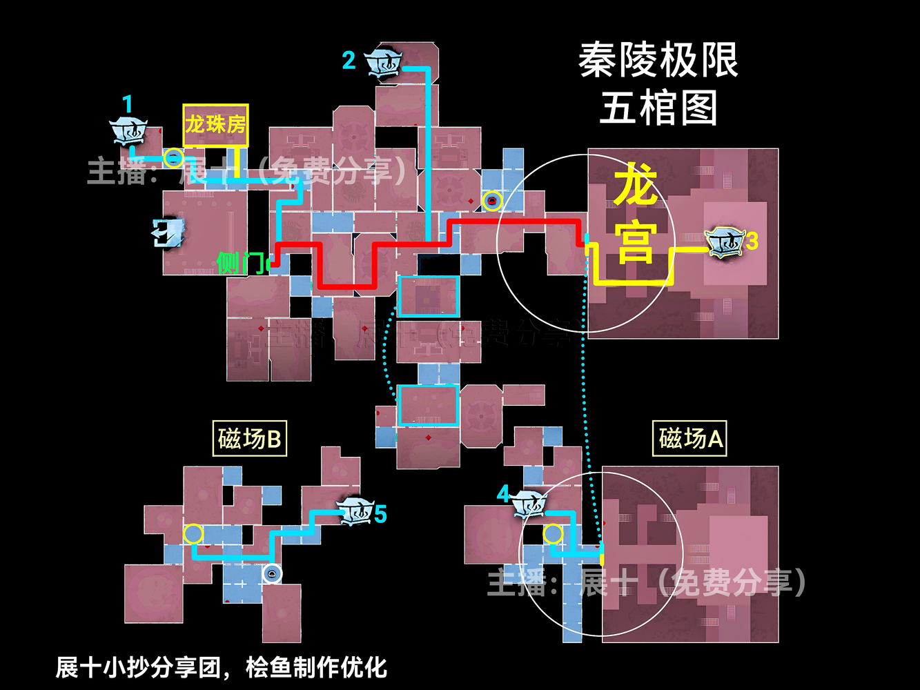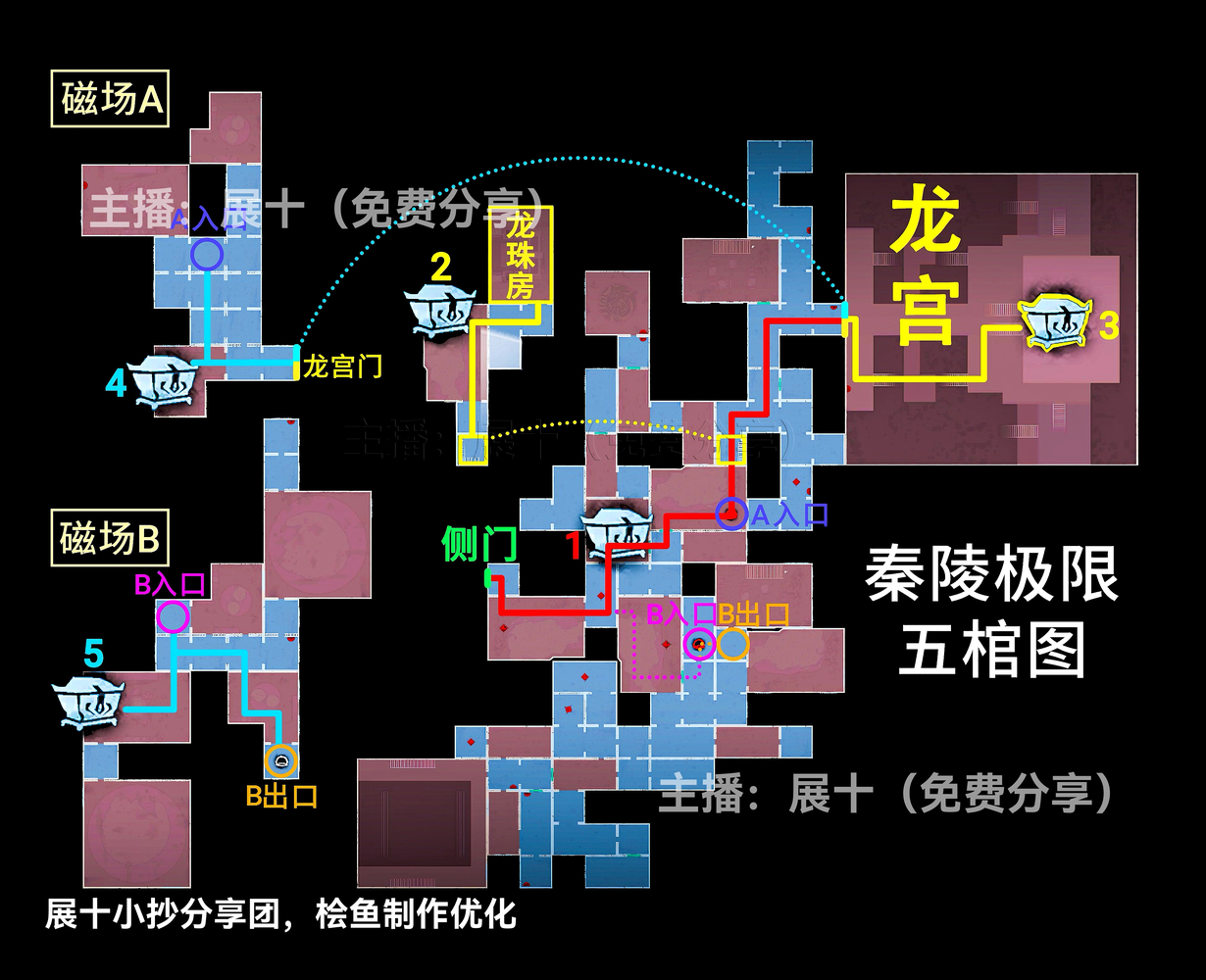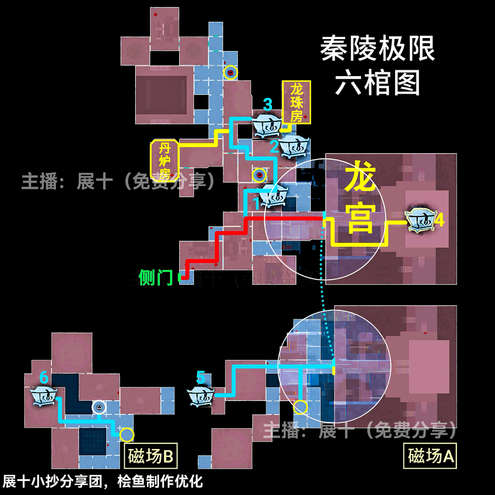 超自然行动组秦岭龙宫地图更新,其中关于极限级别且侧门在左的地图中,区域可以划分为上左右黑、下左黑、下左右黑、左黑、左右黑、■,按照图示的内容区域来进行寻找即可,各个宝箱的分布位置以及走法路线和出入口位置见以下正文!