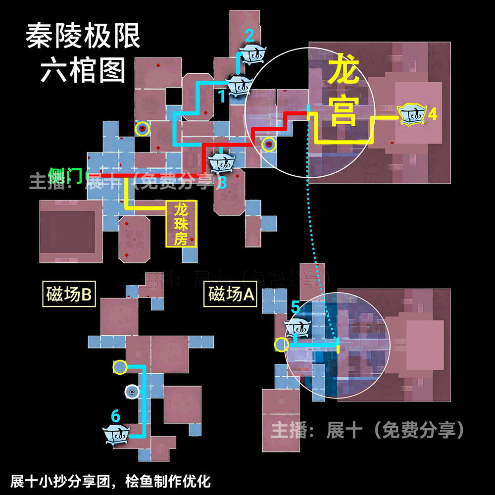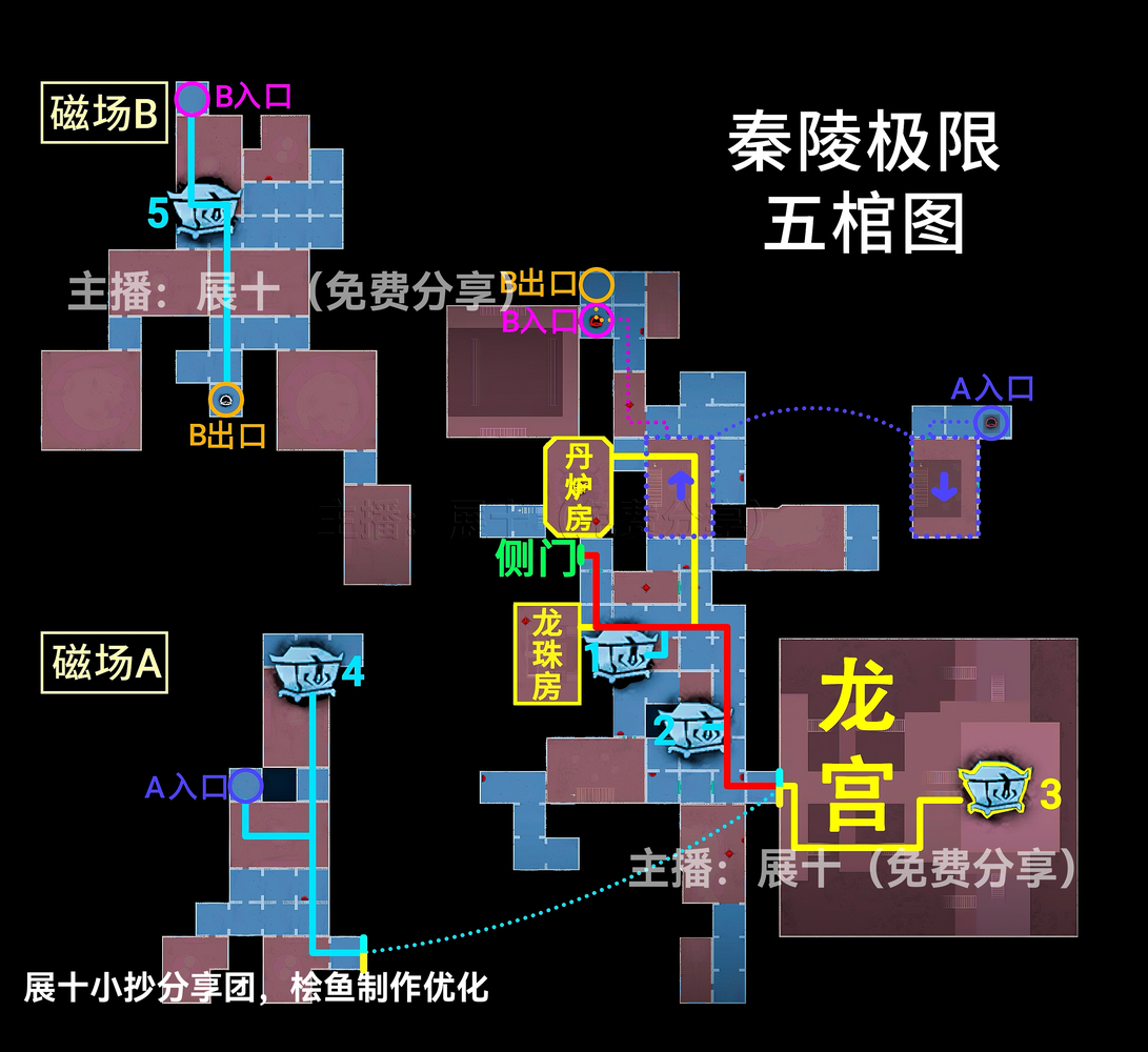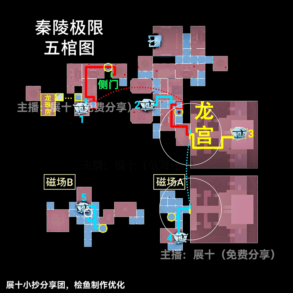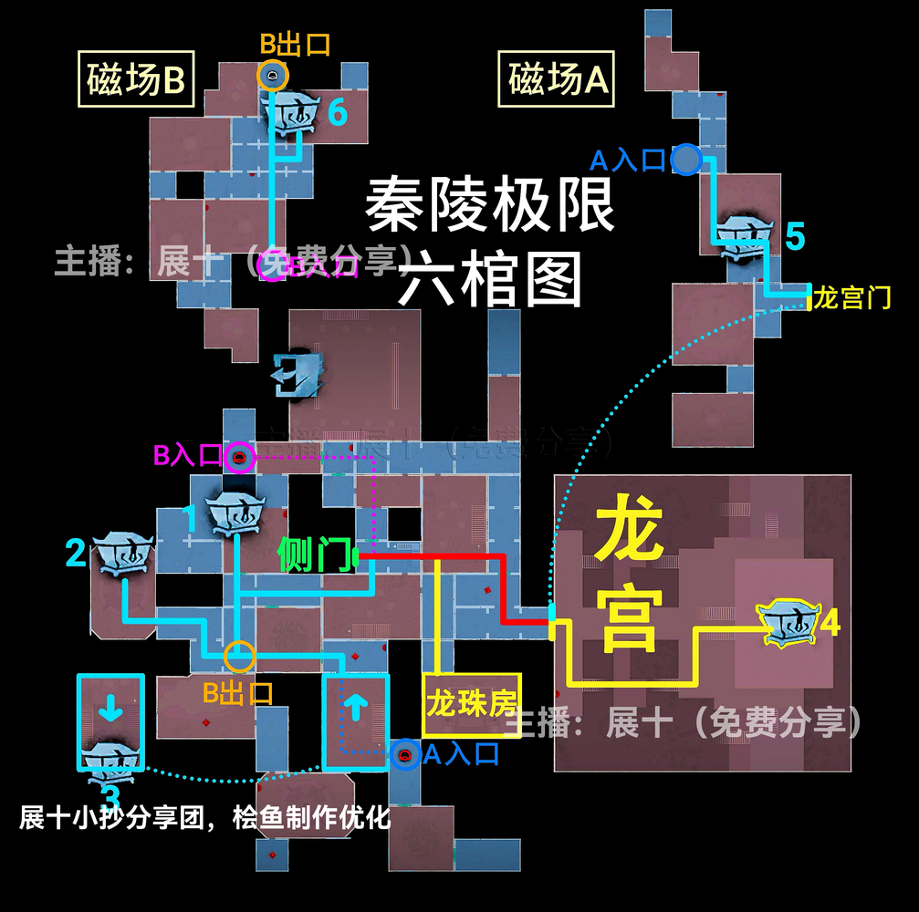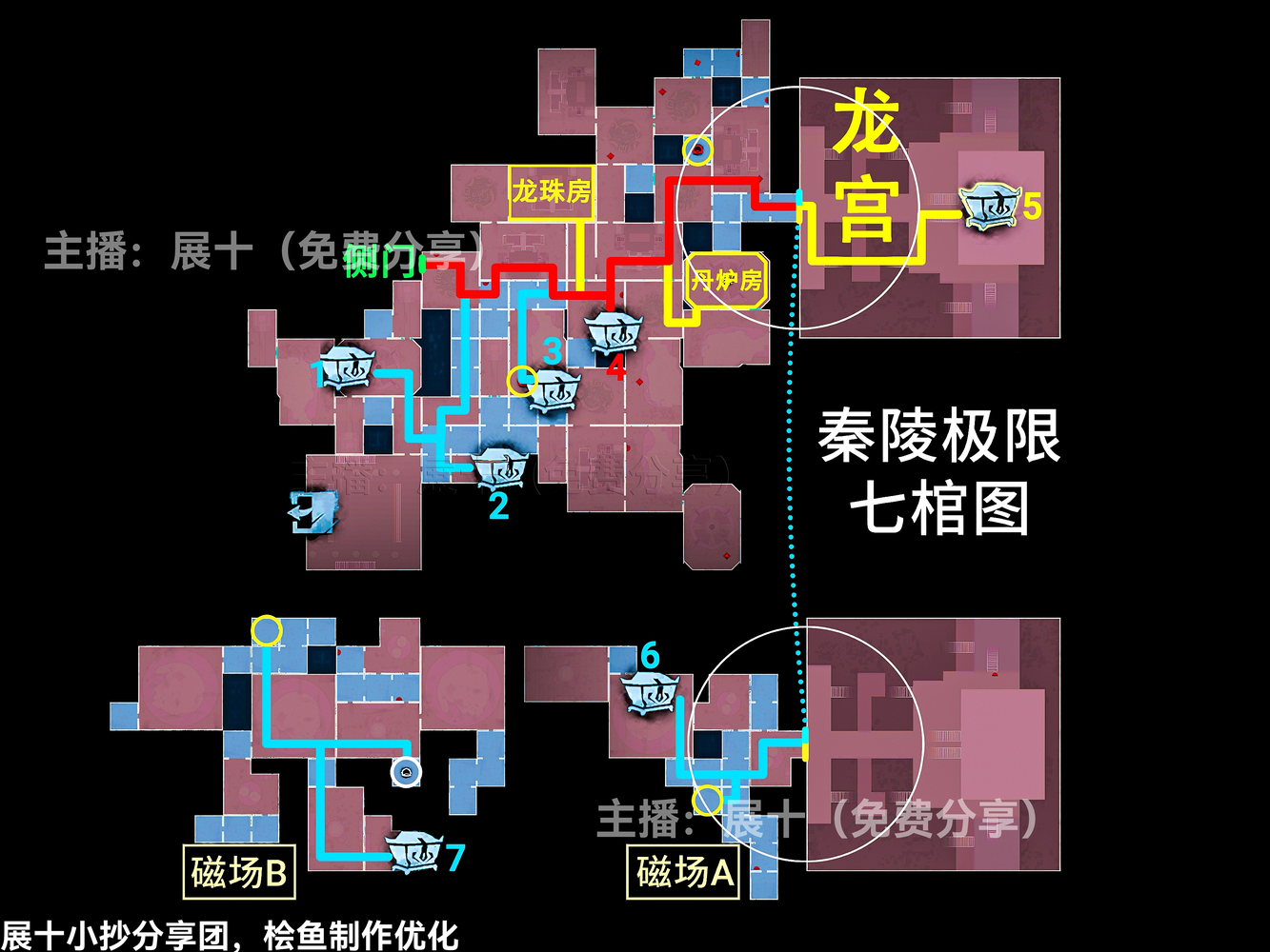 超自然行动组秦岭龙宫地图更新,其中关于极限级别且侧门在左的地图中,区域可以划分为上左右黑、下左黑、下左右黑、左黑、左右黑、■,按照图示的内容区域来进行寻找即可,各个宝箱的分布位置以及走法路线和出入口位置见以下正文!