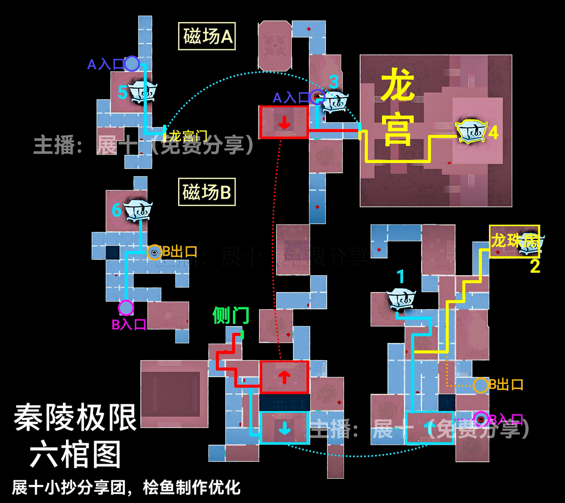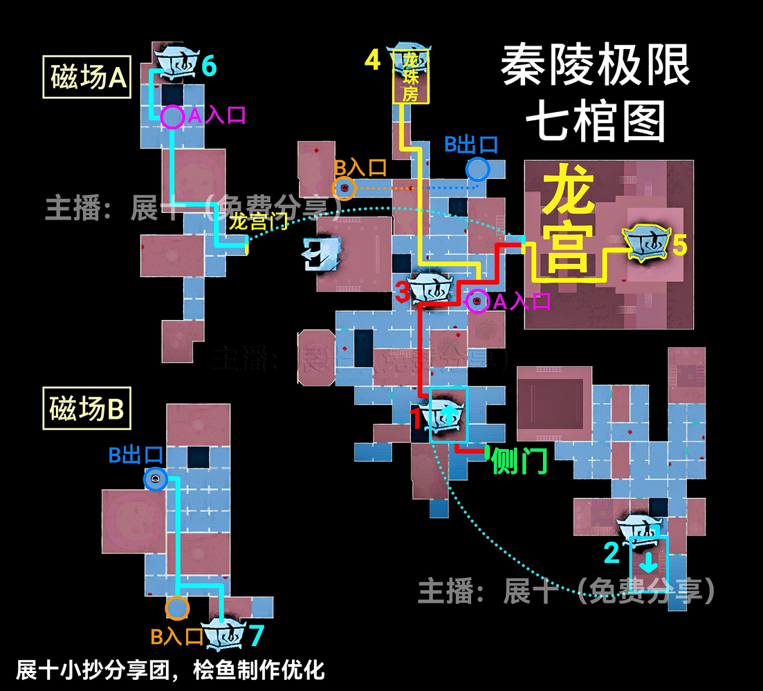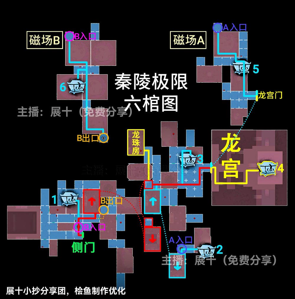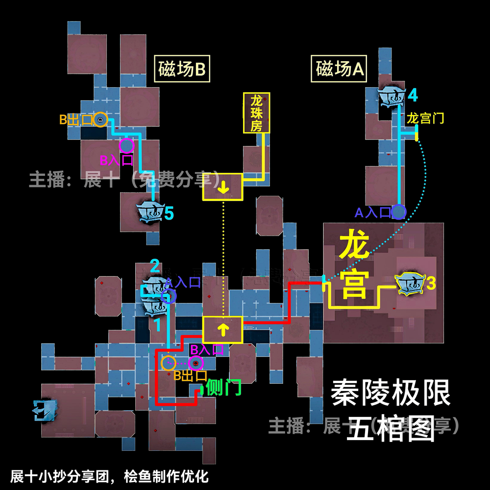超自然行动组秦岭龙宫地图更新,其中关于极限级别且侧门在右的地图中,区域可以划分为上下右黑、上右黑、上左右黑、下右黑、下左右黑、右黑、■、▃、▌,按照图示分布的区域内来进行寻找即可,各个宝箱的分布位置以及走法路线和出入口位置见下文详情!