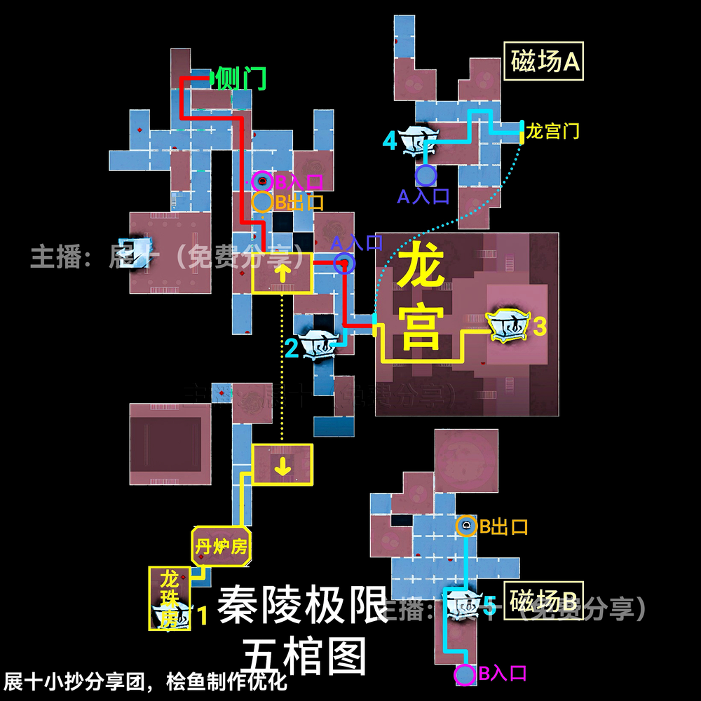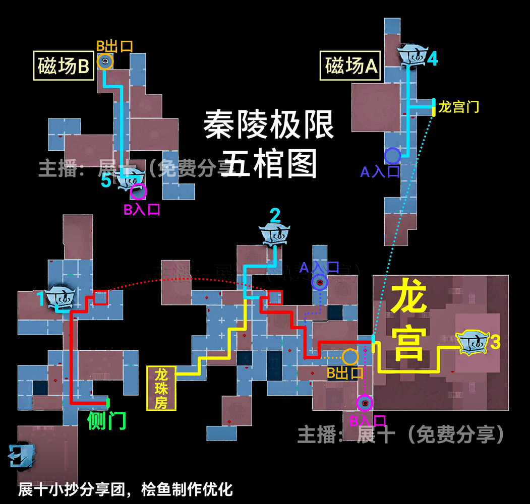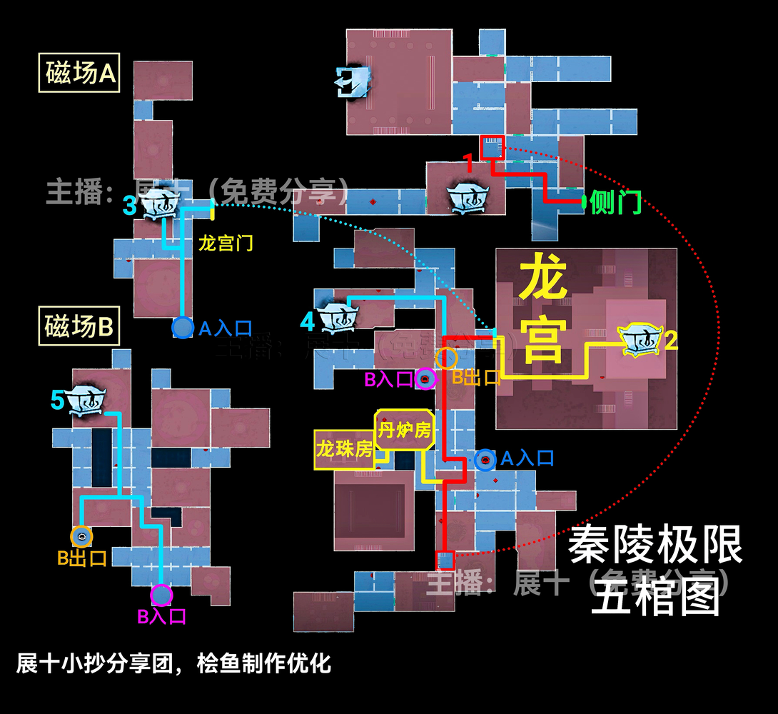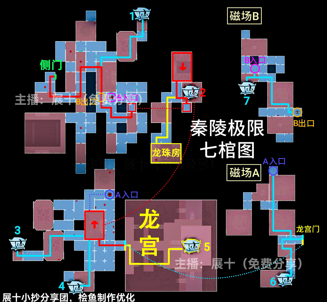 超自然行动组秦岭龙宫地图更新,其中关于极限级别且侧门在右的地图中,区域可以划分为上下右黑、上右黑、上左右黑、下右黑、下左右黑、右黑、■、▃、▌,按照图示分布的区域内来进行寻找即可,各个宝箱的分布位置以及走法路线和出入口位置见下文详情!
