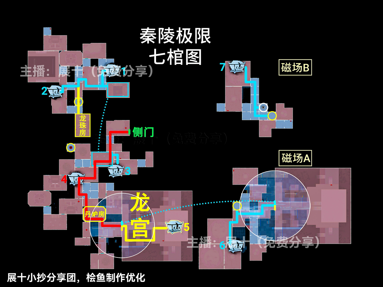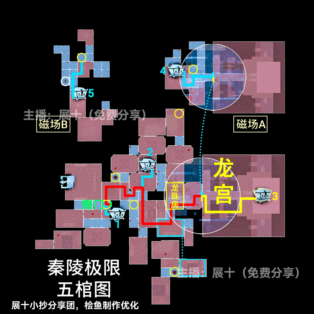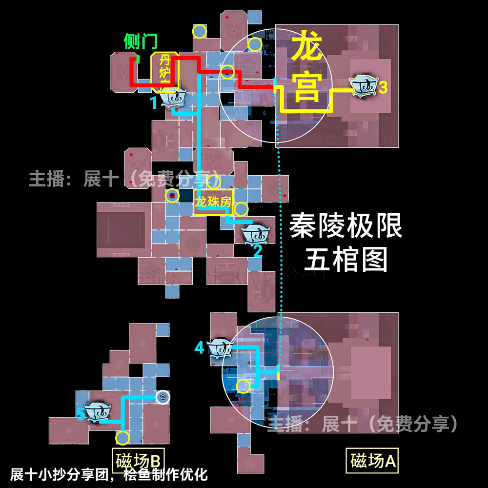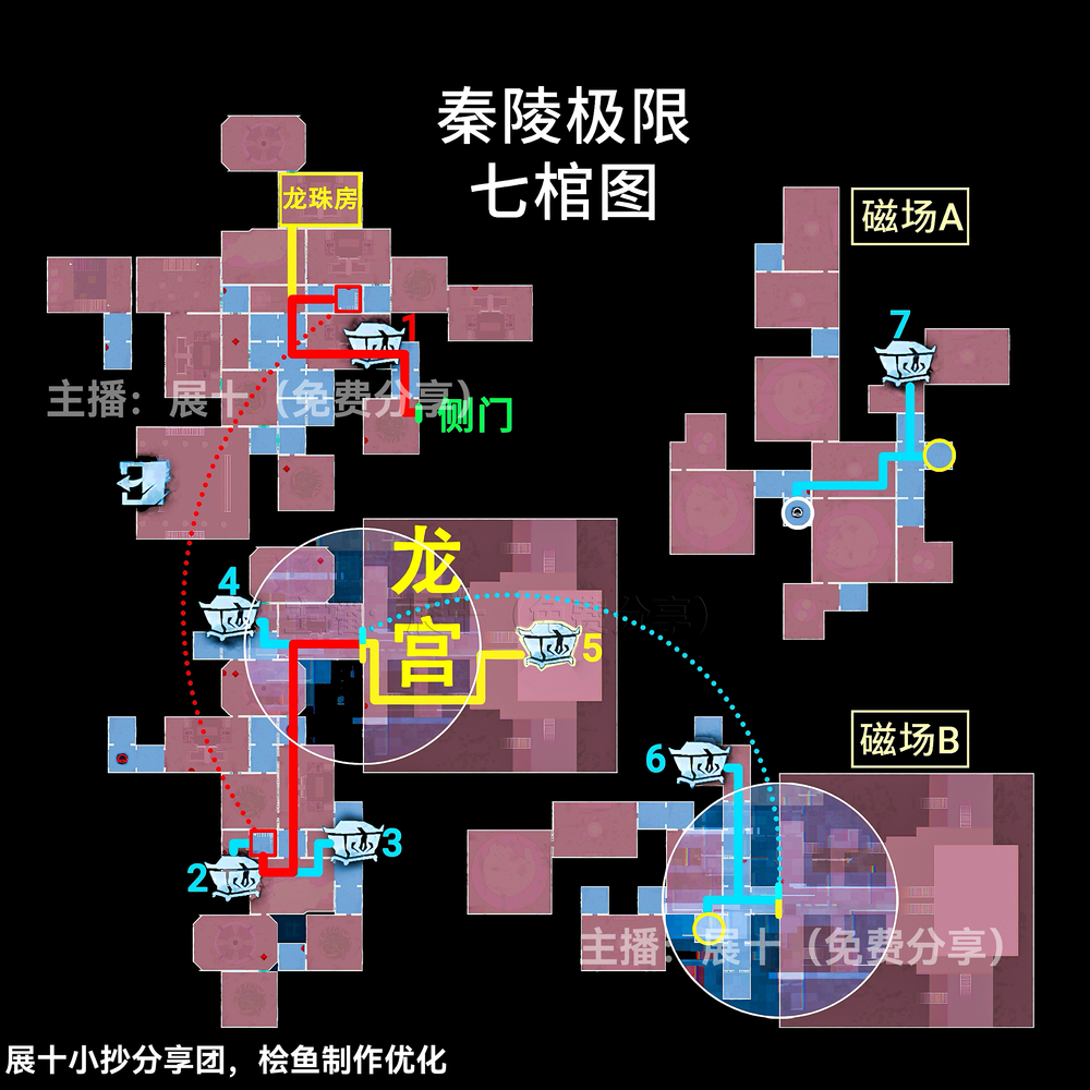 超自然行动组秦岭龙宫地图更新,其中关于极限级别且侧门在右的地图中,区域可以划分为上下右黑、上右黑、上左右黑、下右黑、下左右黑、右黑、■、▃、▌,按照图示分布的区域内来进行寻找即可,各个宝箱的分布位置以及走法路线和出入口位置见下文详情!
