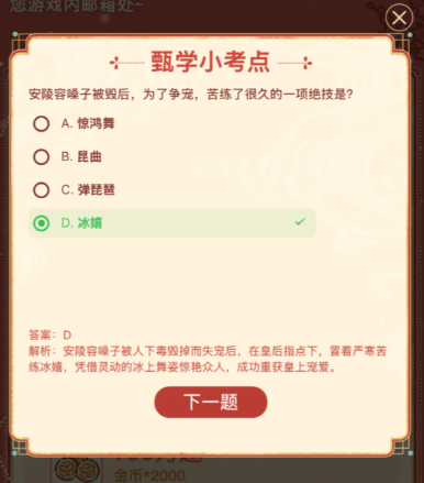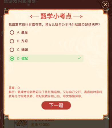 我的休闲时光甄嬛传联动甄学小考点答案汇总