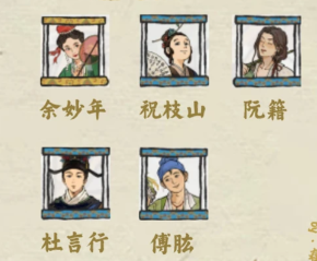 余妙年、祝枝山、阮籍、杜言行、傅肱