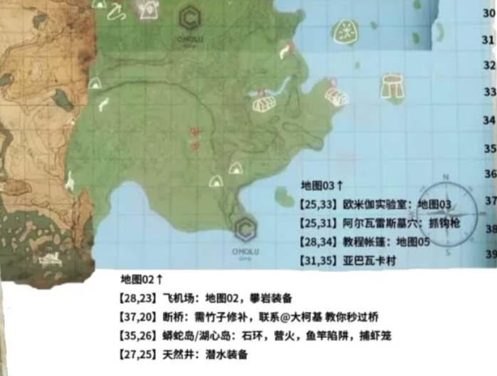 绿色地狱中各个建筑在不同的位置地点坐标中,地图也都在不同的位置中。去地图所在的坐标解锁,靠近地图就可以解锁地图了,例如营地的地图在一个篝火的灰烬里,下文列举生存模式下蓝图解锁坐标的坐标点。