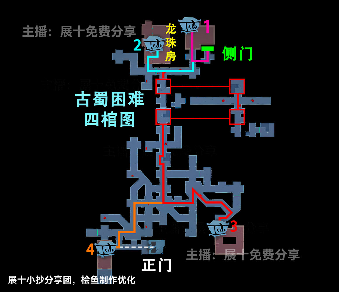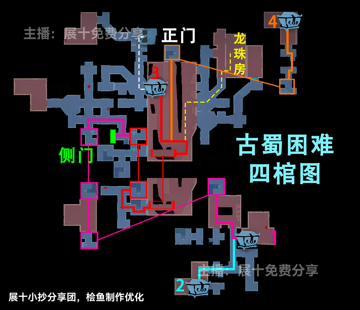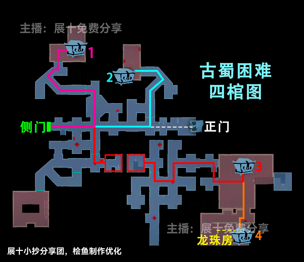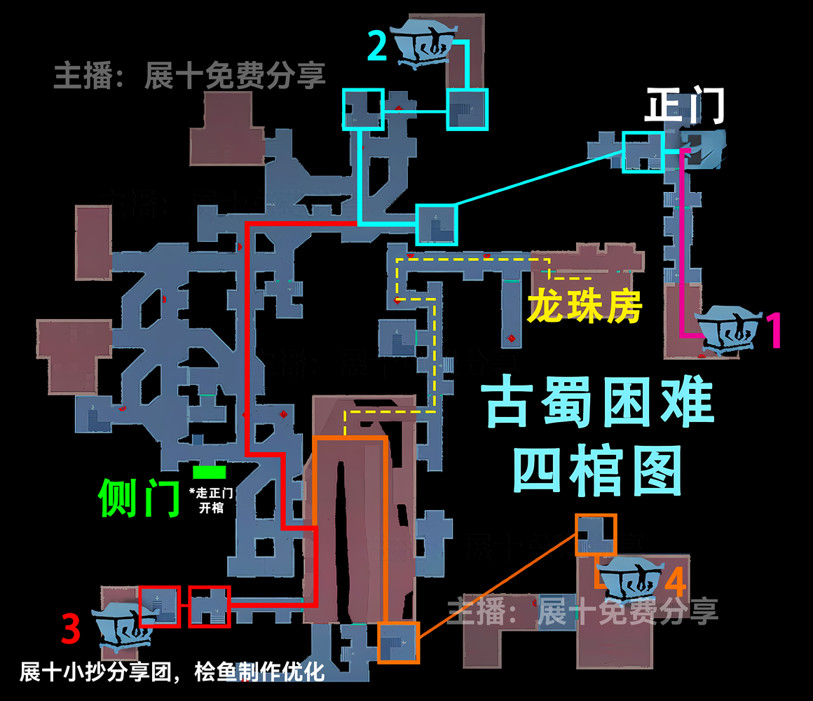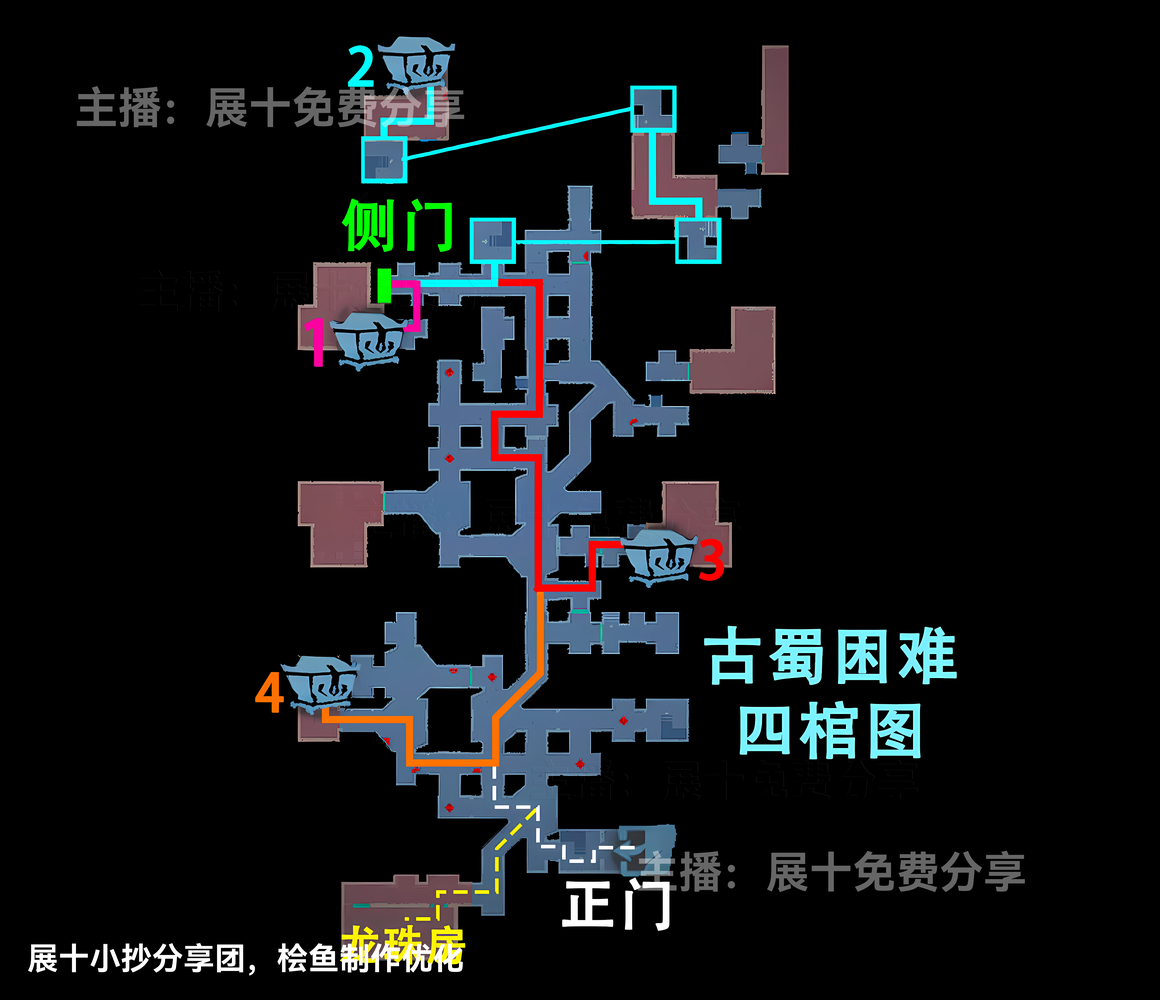超自然行动组古蜀困难难度下,断桥型号的房间可以将区域划分为侧门在上、侧门在下、侧门在右、侧门在左这几个地图,在对应地图中可按照小抄图的物品宝箱分布以及路线规划来进行寻找,详细具体关于古蜀困难断桥型号房间的小抄图内容如下!