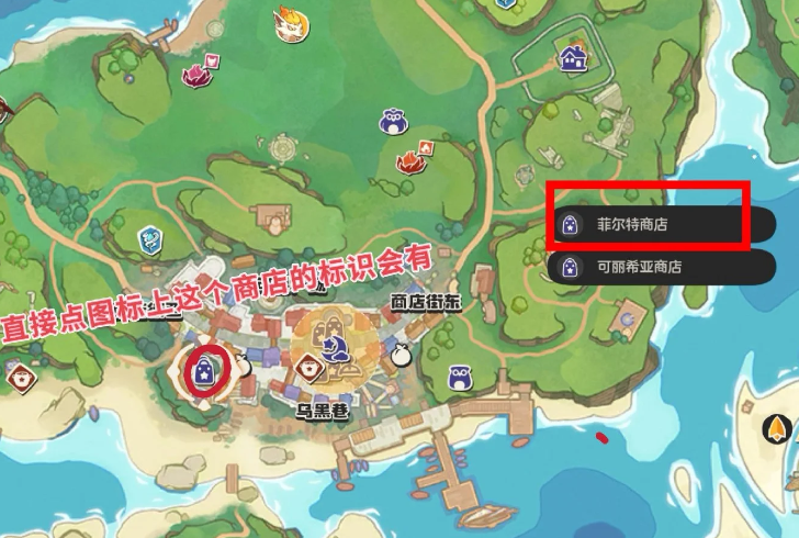 4、如果离开了不知道菲尔特出现的位置,可以直接在地图中找到菲尔特商店