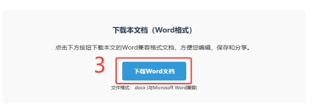 在deepseek中生成了word等文档内容后,想要快速导出直接在文档内容中,可以在与其交流的结尾处增加一句指示词,以完整 Word兼容HTML代码格式,加Word下载按钮,然后就可以按照最终生成的内容来下载文档文件了。