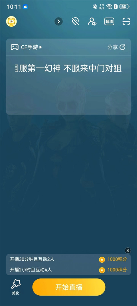 3、取一个足够吸引人的标题,做好开播前的调试设置等准备工作后,点击开始直播