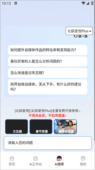 4、AI搜索功能是免费的,用户可以在上面与AI进行对话式高效搜索