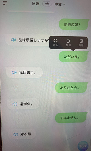 2、软件支持翻译文字、图片、语音,直接语音输入了几个简单的日常用语,系统就能直接翻译