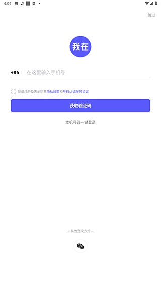 1、打开我在AI软件,输入手机号获取验证码即可登录