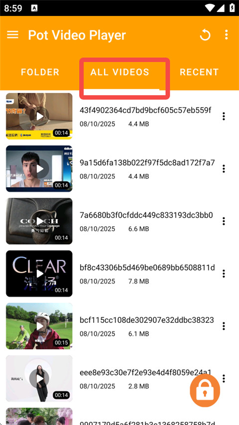 1、打开PotPlayer软件,点击最上方的ALL VIDEOS,选择需要播放的视频