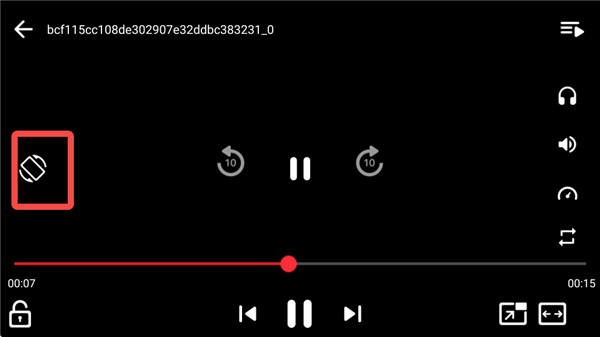 2、进入可以看见目前是横屏播放,且是黑屏状态,点击左侧旋转标识