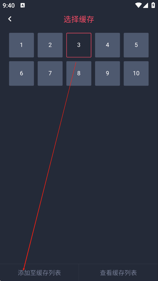3、选择想要缓存的集数,然后点击添加至缓存列表
